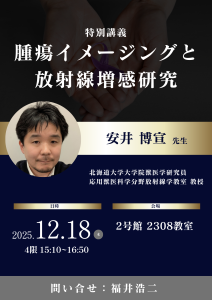北海道大学大学院獣医学研究員 応用獣医科学分野放射線学教室教授 安井博宣先生による特別講座があります。