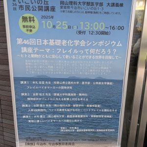 日本基礎老化学会のシンポジウムに参加しました。 10月25日に岡山理科大学 今治キャンパスで開催された第46回 日本基礎老化学会のシンポジウムに参加しました。 フレイルについてどっぷり勉強させていただきました。 木村先生ありがとうございました。 今治グルメの堪能しました。